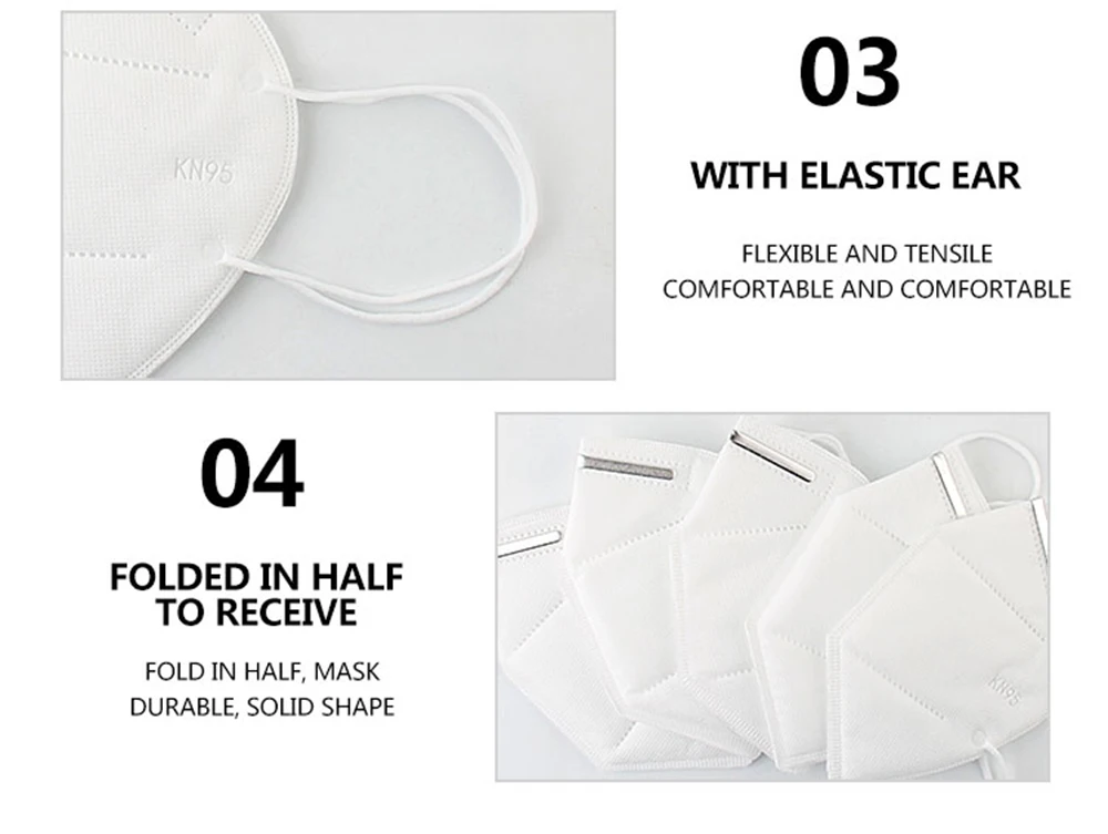 Description:1.Non-disposable KN95 masks, Breathable,sanitary and convenient for using.2.The inner layer of activated carbon can filter harmful gases or odors.95% filtration, a 360-degree three dimensional breathing space.3.Made of high quality material, safe, soft and comfortable,reduce skin irritation.4.High elastic rubber band, absorb sweat and not tight5.With a concealed plastic nose, built in cartilage bridge, can be adjusted to avoid voids and reduce the inhalation of harmful substances.6.Folding thin section, lightweight and easy to useSpecifications:Applicable: AdultLife cycle: Non-disposableMaterial: Cotton polypropyleneSize: Folded size: 21*15.5cmQuantity: 10pcs/lotItem Type: KN95 Maskswarning:Non-washablePlease be kindly noted,the listed products is produced and distributed and subject to its country of origin.