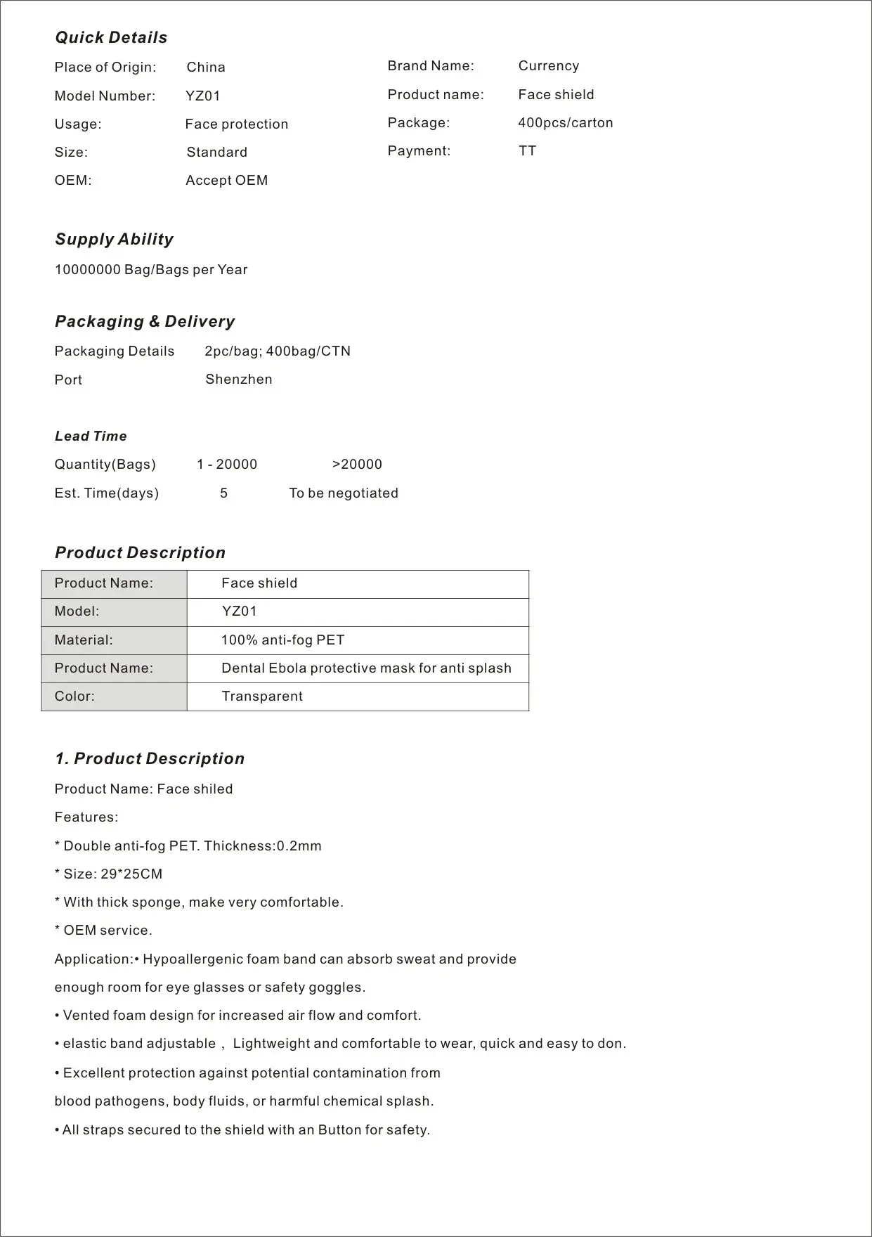 Erste, es effektiv schützt die gesamte gesicht, speichel in die augen und ist anfällig für infektion.Zweite, die schutz maske ist angenehm zu tragen, und die schutzbrille kann schaden augen und haut für eine lange zeit.Dritte, die schutz maske verwendet eine hoch transparent und umwelt freundliche substrat, dass hat hohe definition und ist nicht schädlich für menschliche gesundheit.Viertens, schutzmasken sind ihr geschenk, und es der lohnt mehr als nur geben geld oder geschenke!Optional Quantity: 10 Pcs/50 Pcs/100 Pcs/200 Pcs/500 Pcs/1000 Pcs