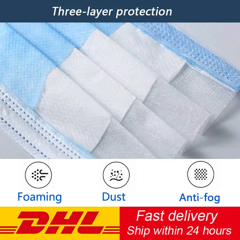 Mask Disposable Nonwove 3 Layer Ply Filter Mask Mouth Face Mask Filter Safe Breathable Protective Masks 48 Hours Shipping