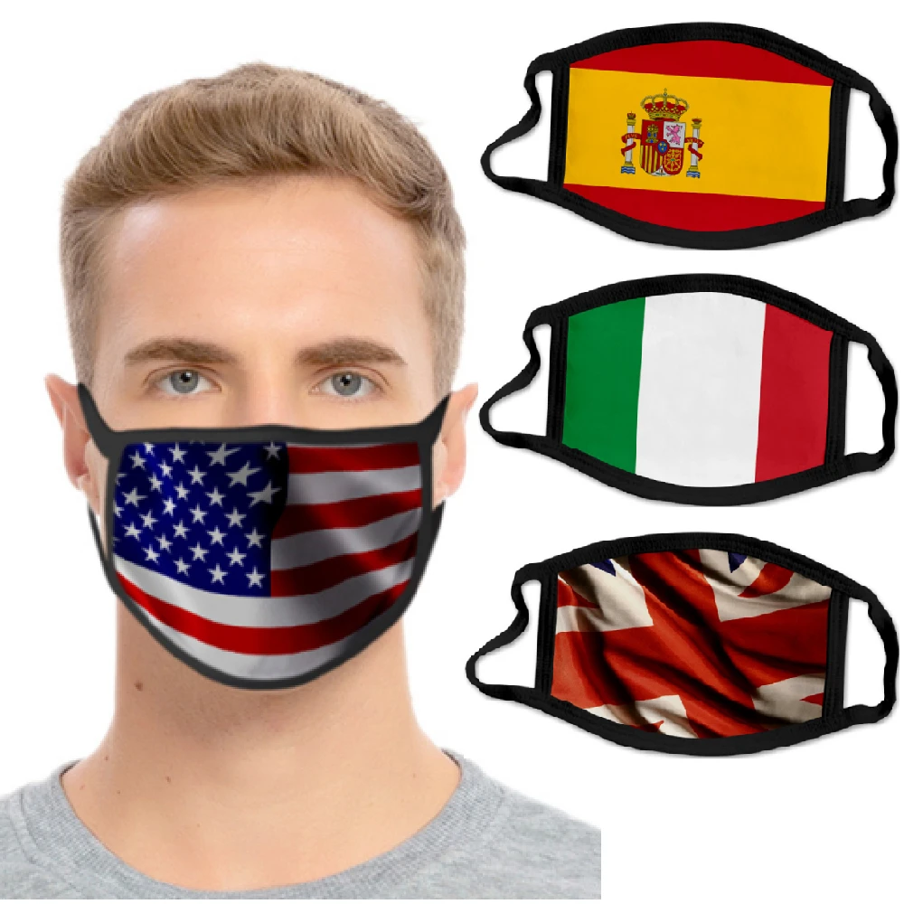 2020 Fashion Printing Mouth Mask National Flag Pattern Filter Mask Reusable Anti-Dust Anti Pollution Face Mask for Men Women