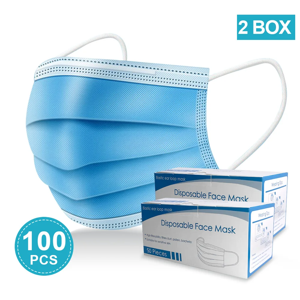 20/40/60/100 Pcs 3 Layers Disposable Mask Non-woven Face Mask Personal Outdoor Protect Dustproof Healthy Care Masks In StcokBuy Now On Aliexpress