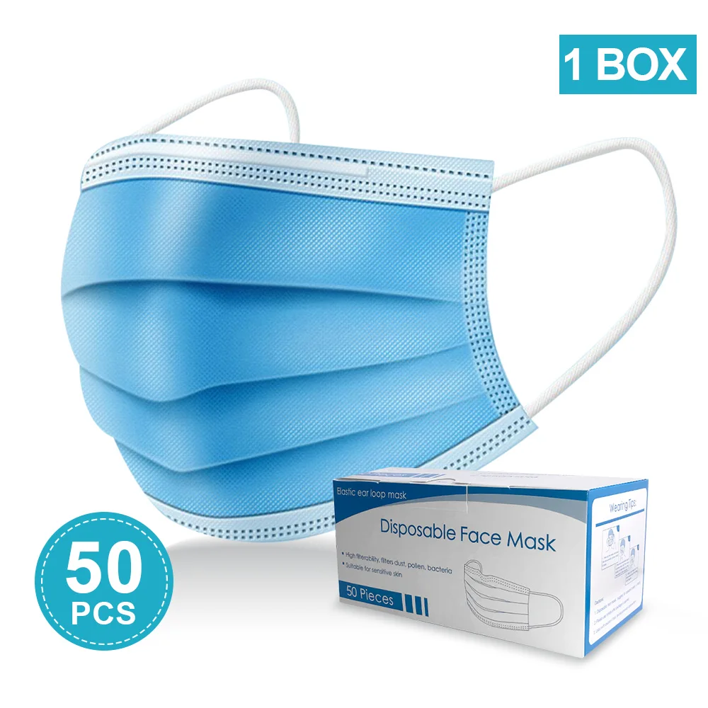 Stock 50 PCS 3 Layer Disposable Face Mask Anti PM2.5 Influenza Bacterial Facial Dust-Proof Safety Protective Mouth Masks UnisexBuy Now On Aliexpress