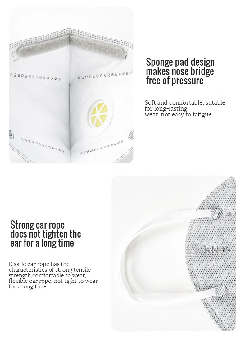 Please be kindly notedthe listed product is produced and distributed abroad and subject to the laws of its country of origin.Description:1.Disposable KN95 masks, Breathable,anti dust,sanitary and convenient for using.2.The inner layer of activated carbon can filter harmful gases or odors.95% filtration, a 360-degree three dimensional breathing spaceprovide anti-bacterial and anti-dust protection for you.3.Made of high quality material, safe, soft and comfortablereduce skin irritation.4.High elastic rubber band, absorb sweat and not tight5.With a concealed plastic nose, anti fog, built in cartilage bridge, can be adjusted to avoid voids and reduce the inhalation of harmful substances.6.Folding thin section, lightweight and easy to useSpecifications:Instructions:Cover the nose and mouth and hang the ear straps on both sides of the mask on the ear;Fix the bridge of the nose in a nose to prevent dirty air from entering;Pull the mask to the lower jaw to create a three-dimensional breathing space.Best Wear time is 8 hoursNoteNon-washableProtection Class: KN95Gender: Unisex