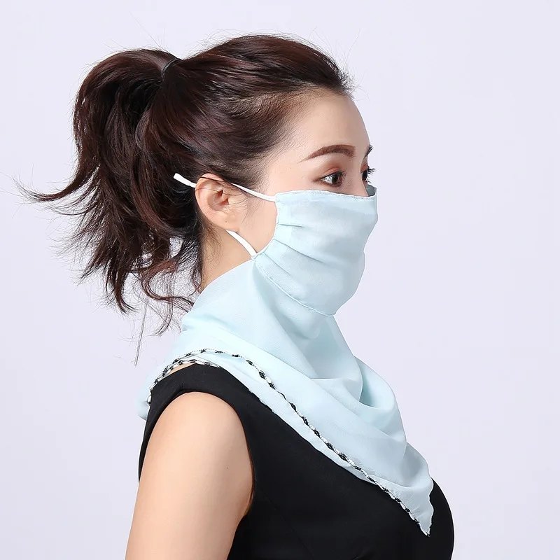 | Summer Sun Protection Facemask Windproof Veil for Women Chiffon Scarf Outdoor Driving Cycling Mask Neck Sunscreen Silk Scarf |