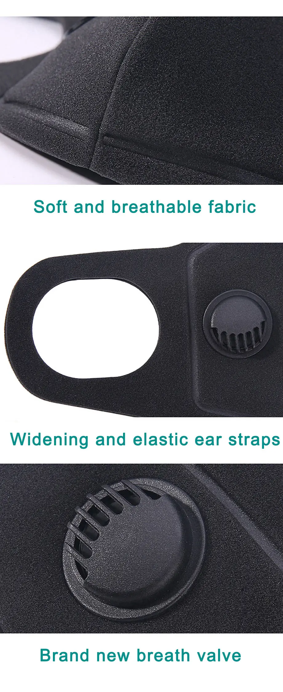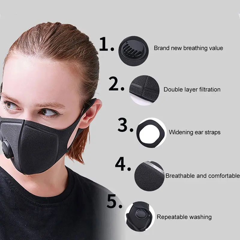 | 3pcs Black Anti-dust Breath Valve Mask Anti-pollution Washable Sponge Mouth Mask Waterproof Resusable Women Men Protective Masks |