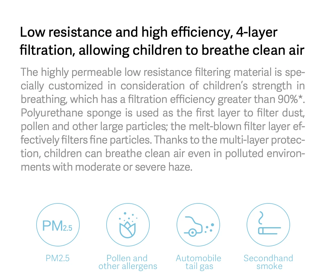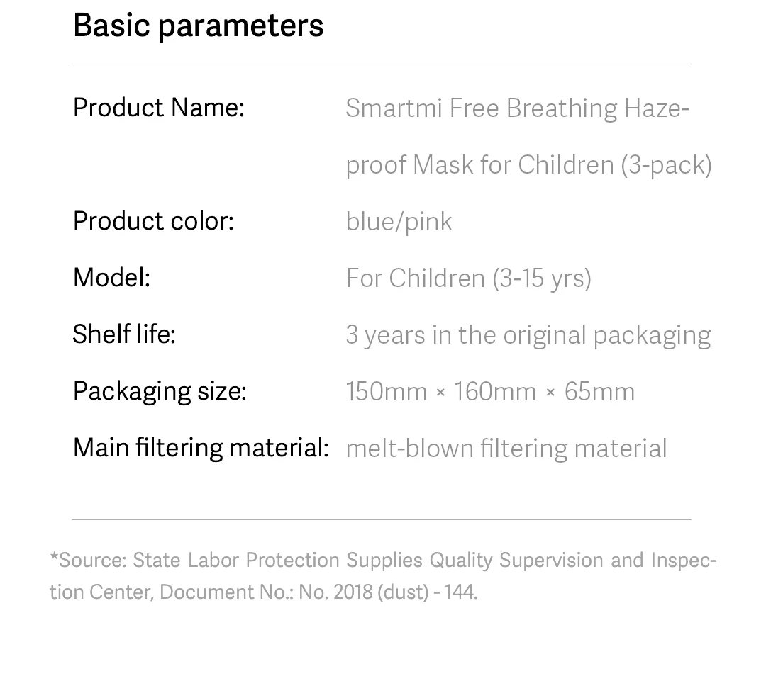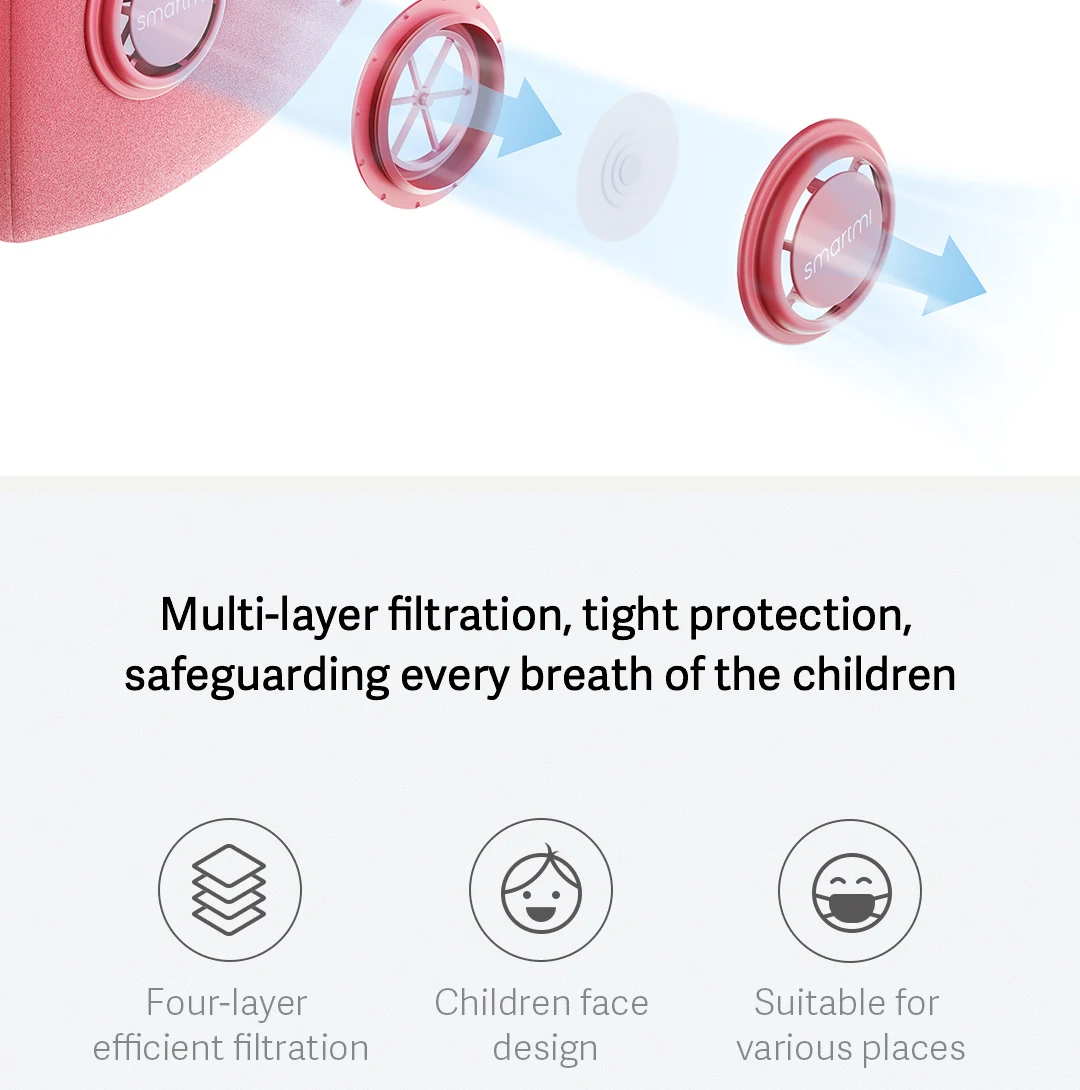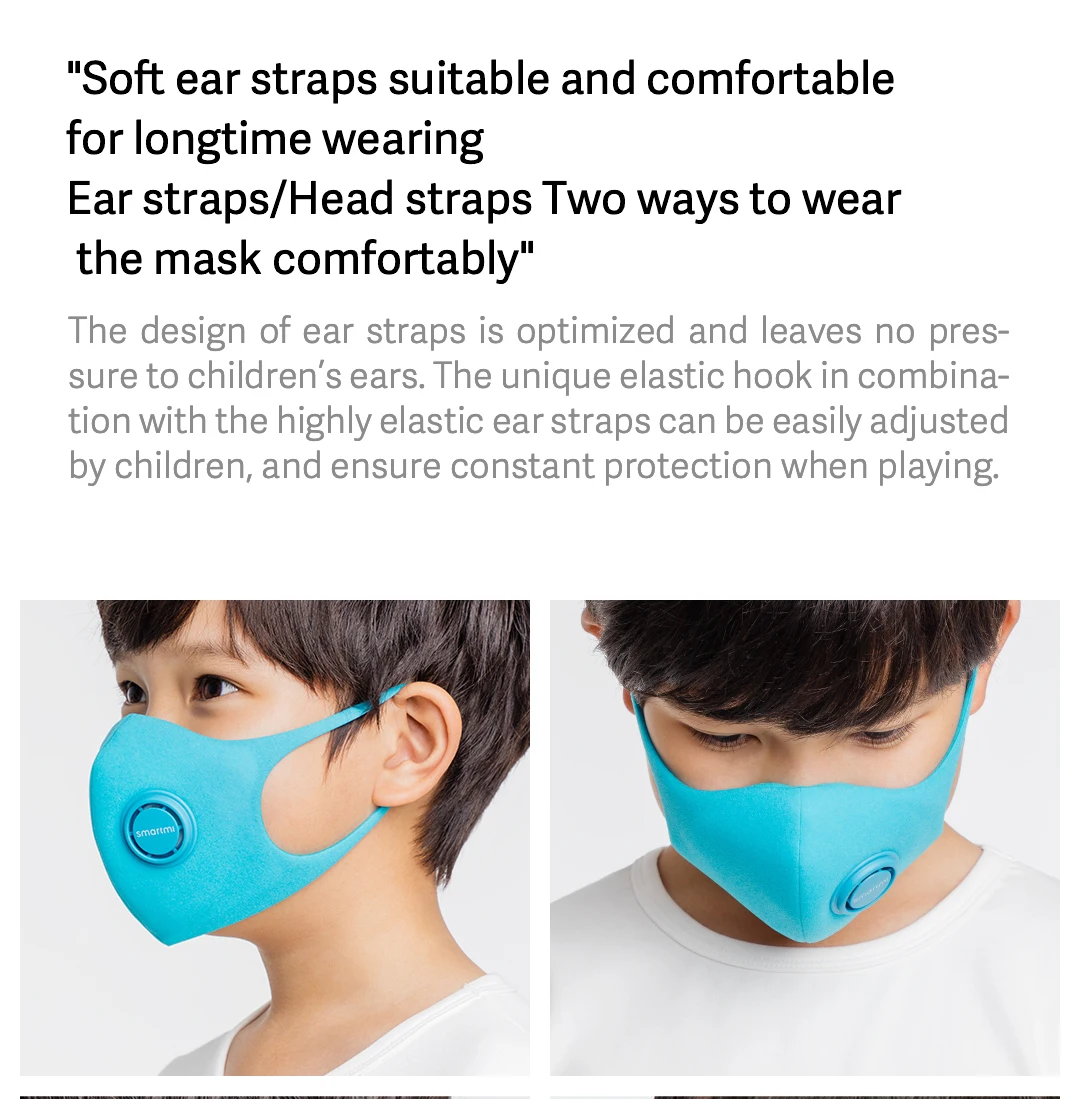 | In stock SmartMi Children's mask PM2.5 Haze Mask Anti-haze Face Mask Adjustable Ear Hanging 3D Design Comfortable Light for kids |