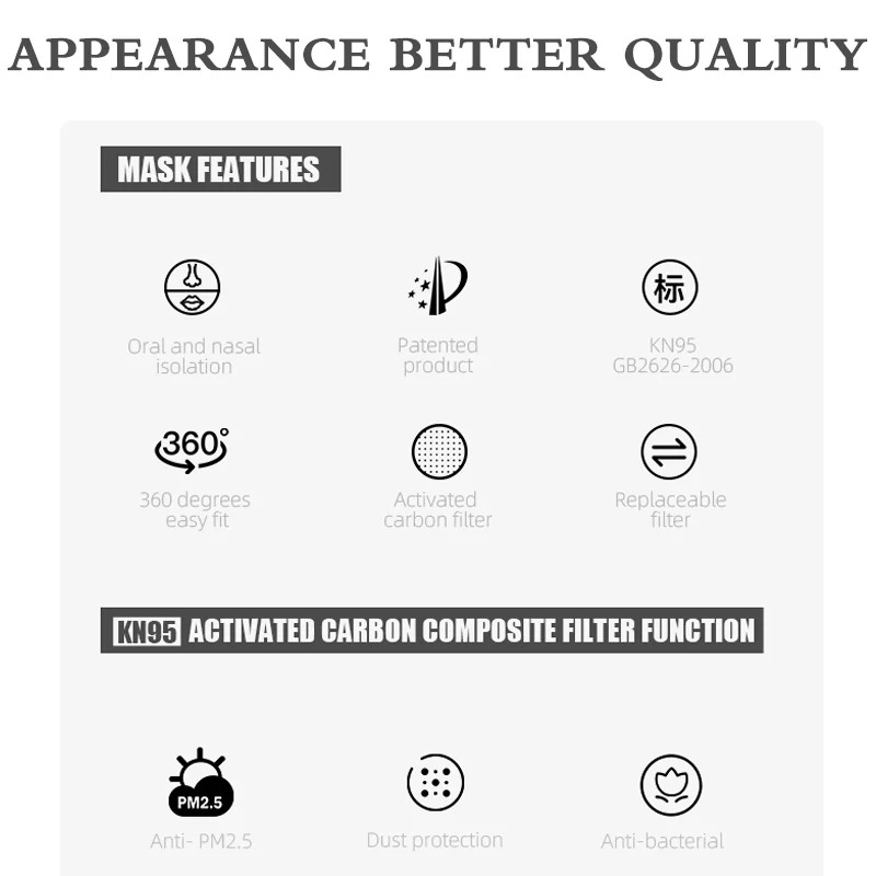 kn95 mask Five layers of filtering mouth face mask Kn95 dust masks Reusable breathable dust mask 24 hours shipping