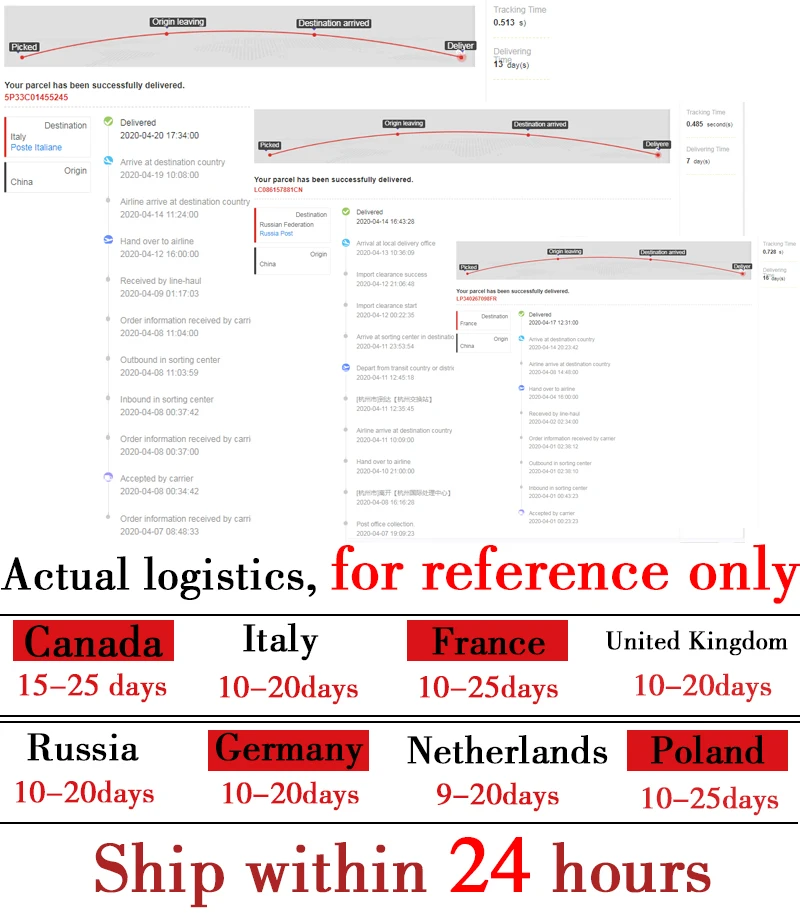 We have opened the EMS priority green channel to Canada, the United States, Japan, Singapore, France, Germany, Spain, Belgium, Italy, the Netherlands, the United Kingdom, Switzerland, and Sweden. To these 13 countries / regions, you can choose EMS, and the transportation is very fast. Go to other countries. Please choose AliExpress standard delivery or AliExpress express mail, we will continue to update.The actual logistics information is for reference only, AliExpress standard SHIP: