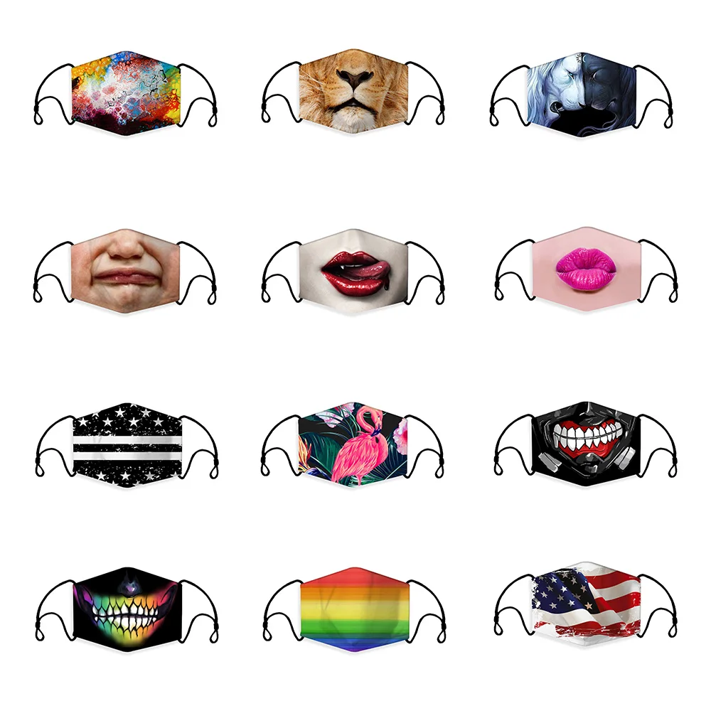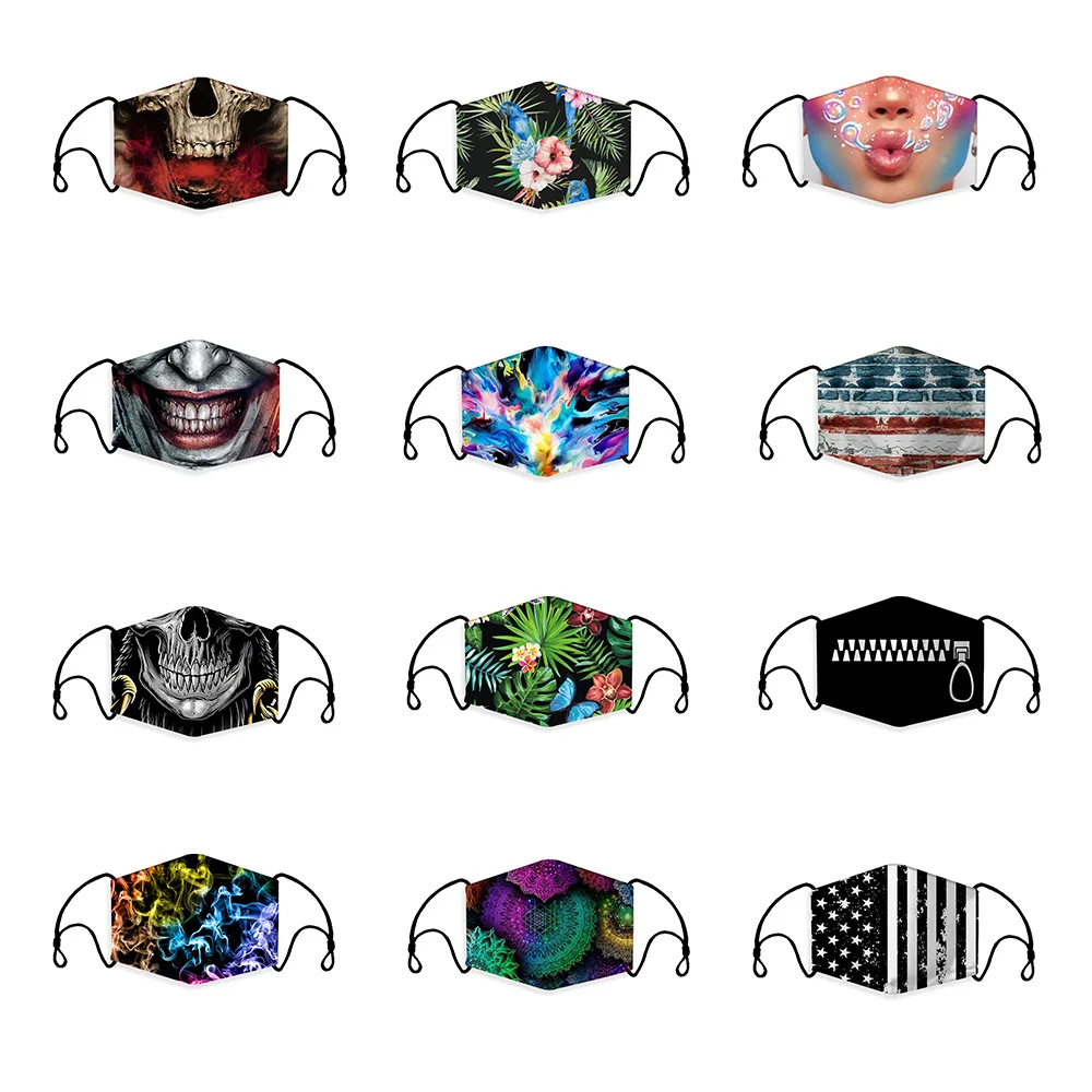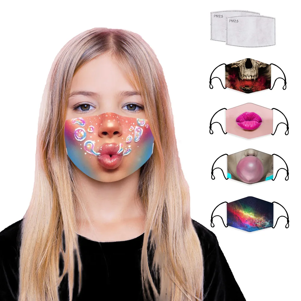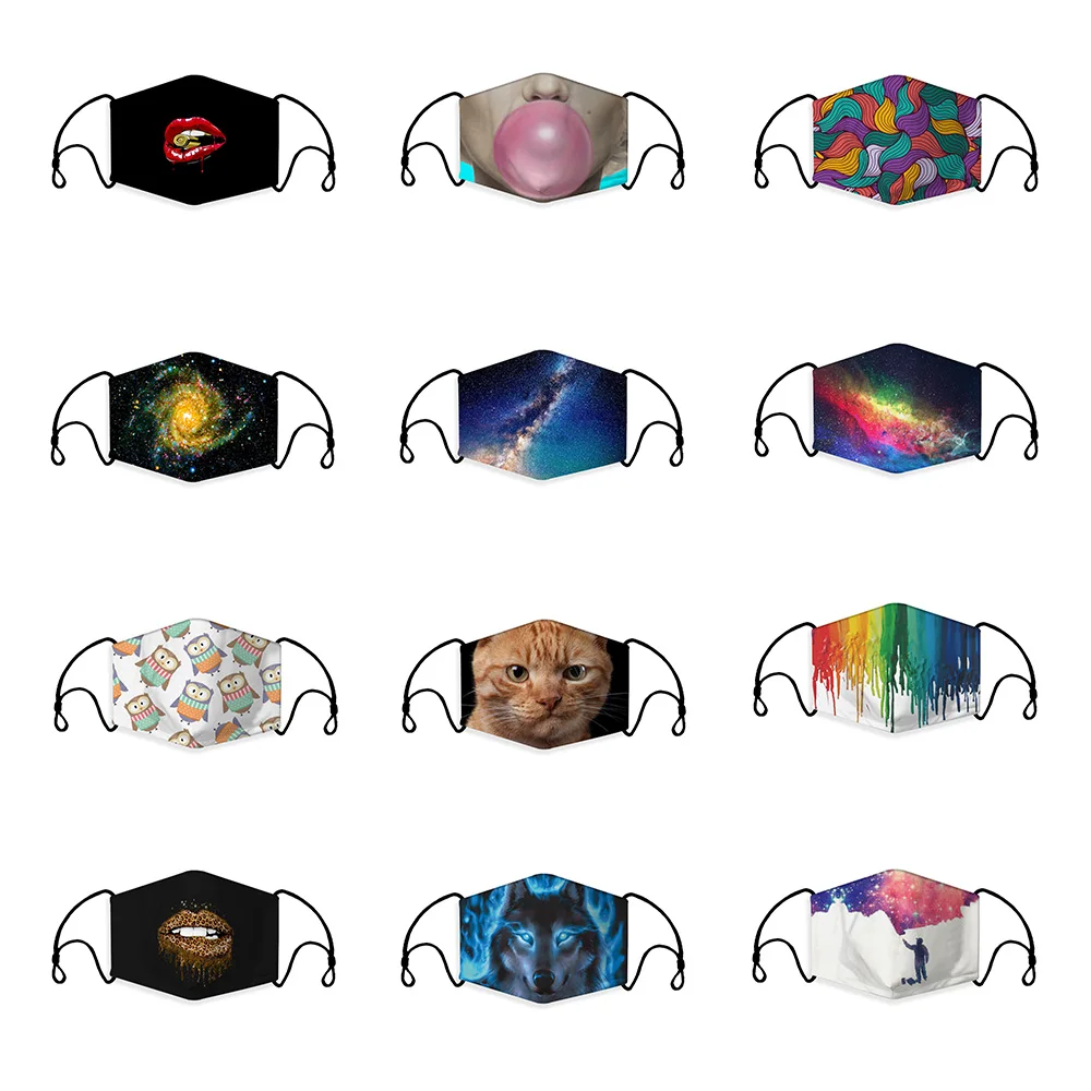 | New 3D Printing Color Reusable Unisex Cotton Child Mouth Mask Washable Anti Dust Face Mask Activated Carbon PM2.5 Filter Masks |