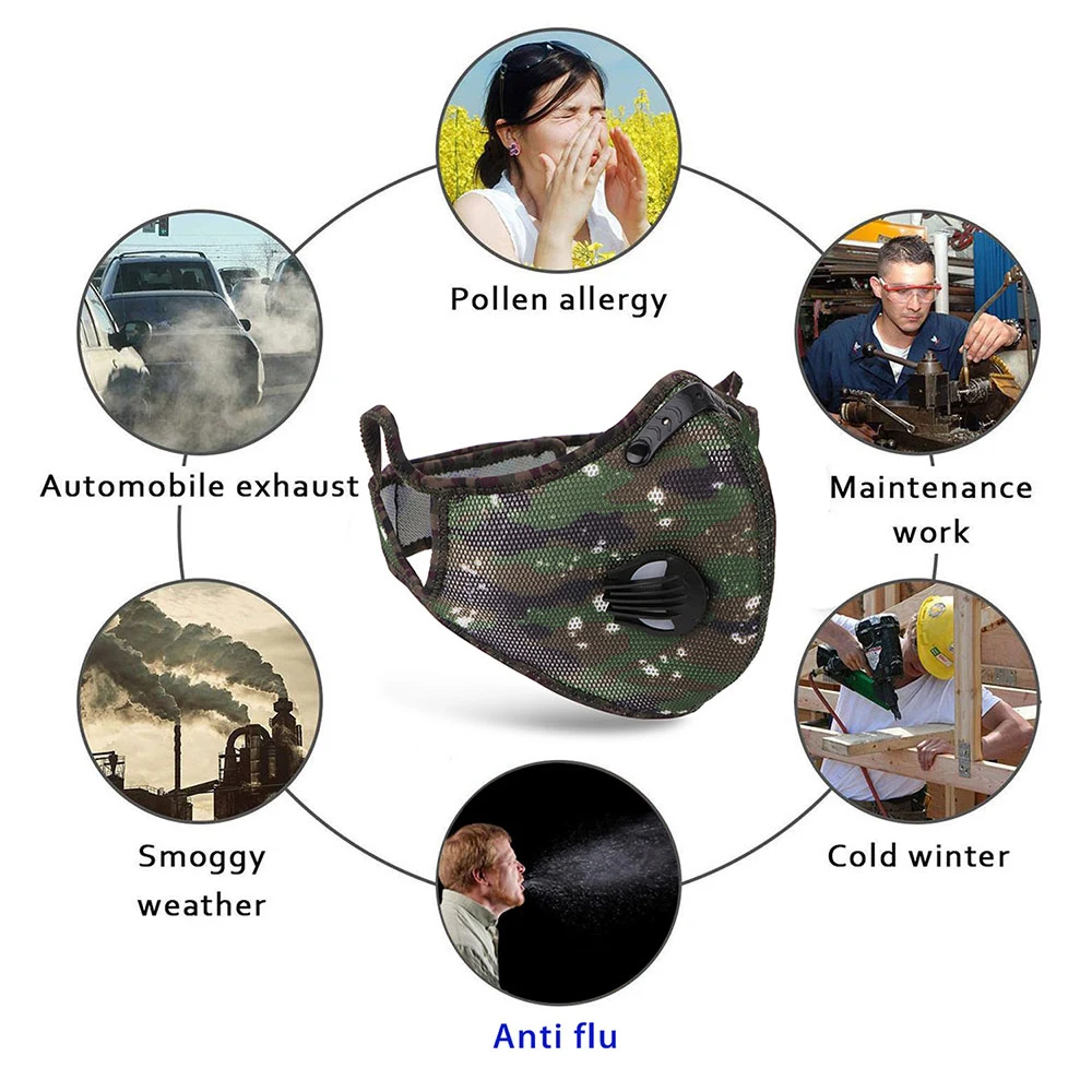 Facial Reusable Mouth Mask Washable Protective PM2.5 Filter Anti Dust Face Mask Windproof Mouth-muffle Bacteria Anti Flu Mask