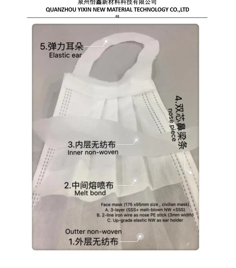 3 ply , non-woven outside, meltblown cloth in the middle.
