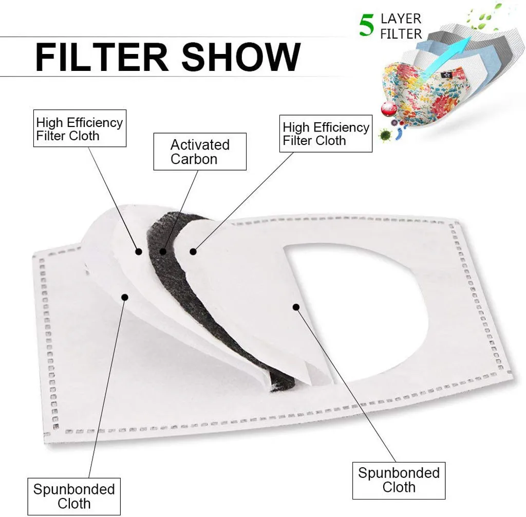 2-200PCS PM2.5 Mask Filter Paper 5Ply Anti Dust Mouth Face Mask Carbon Cotton Disposable Filter Protective For Adult