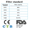 | FFP2 Mask Masque KN95 Masks Mouth Mask N95 Filter Protective Safety Anti Bacteria EN149 2001+A1:2009 Eu Certification |