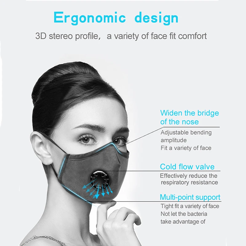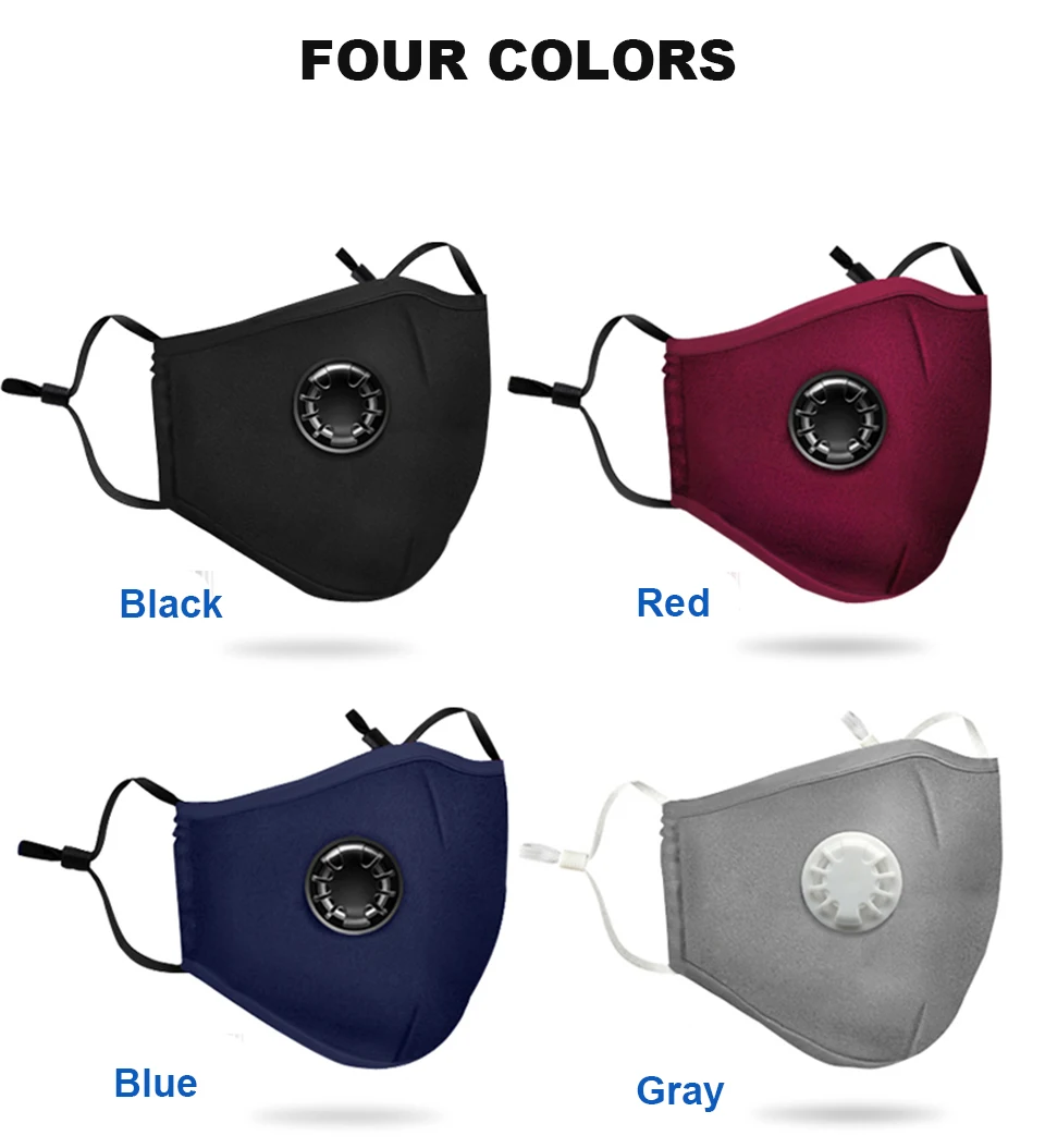 | Reusable Mask With Respirator PM 2.5 Filter Anti-Dust Face Mask Washable Mouth Masks Protection For Women Men Cotton Facemask |