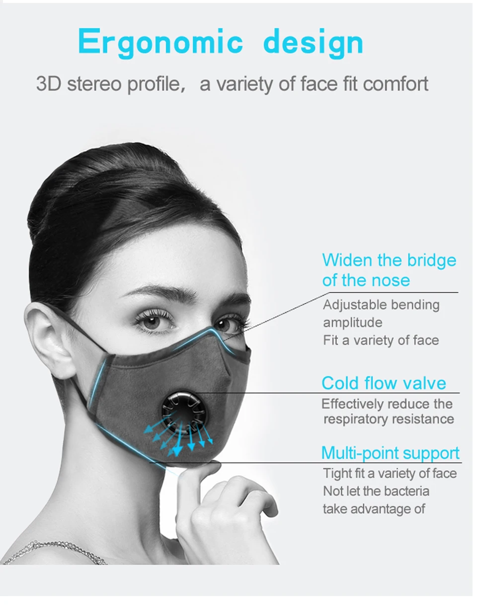 aiboduo face mask respirator mask Dustproof Anti-fog Breathable Face Masks Filtration Features as mascara