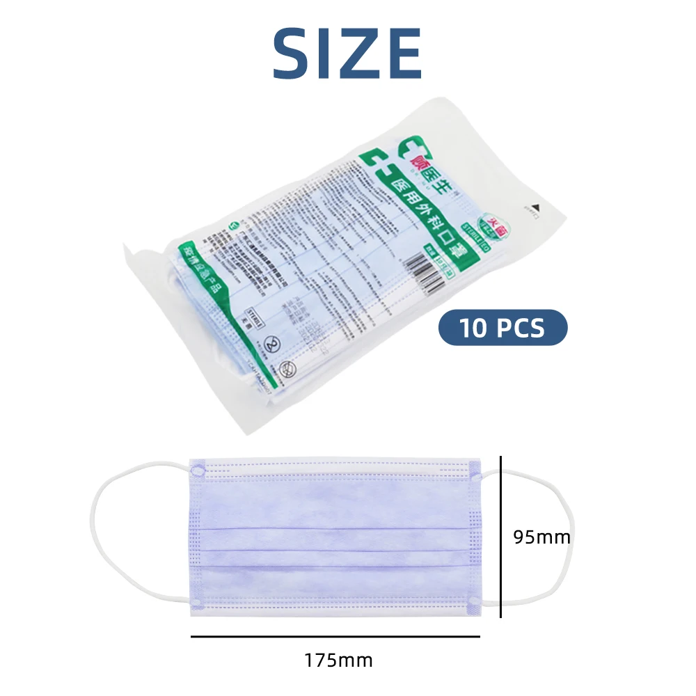 | 10pcs 50pcs 100pcs Sterile EO Disposable Face Mask Earloop Anti Dust Mouth Masks 3-layer Meltblown Cloth Protective Facial Mask |