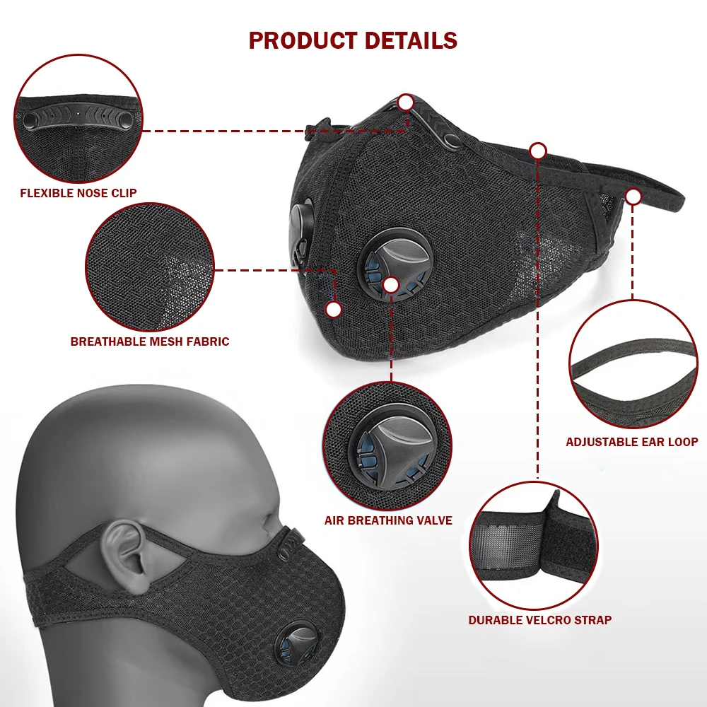 | Cycling Masks With Breathing Valve Bike Mask Anti Dust Face Mask With Filter Running Cycling Anti-Pollution PM2.5 Face mask |