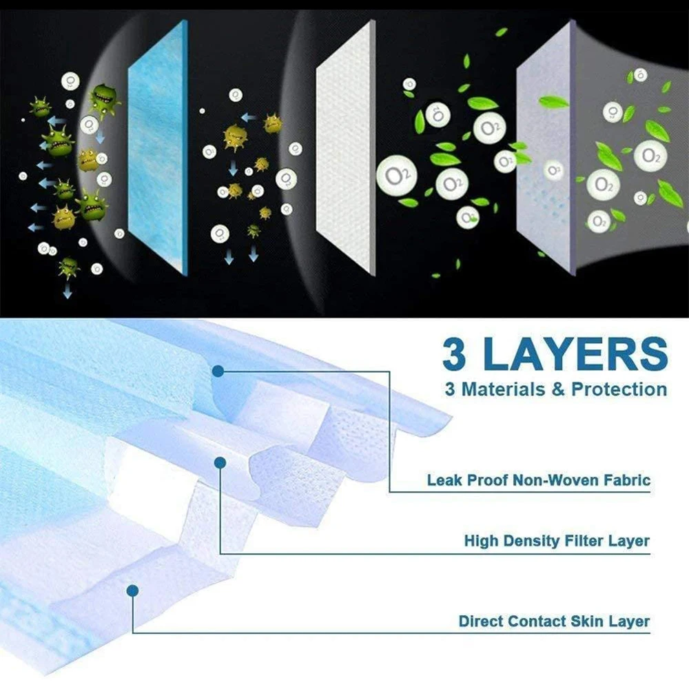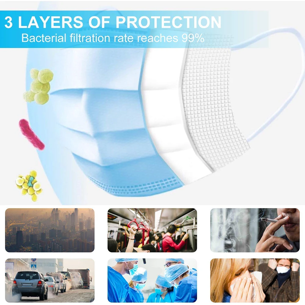 20/40/60/100 Pcs 3 Layers Disposable Mask Non-woven Face Mask Personal Outdoor Protect Dustproof Healthy Care Masks In Stcok