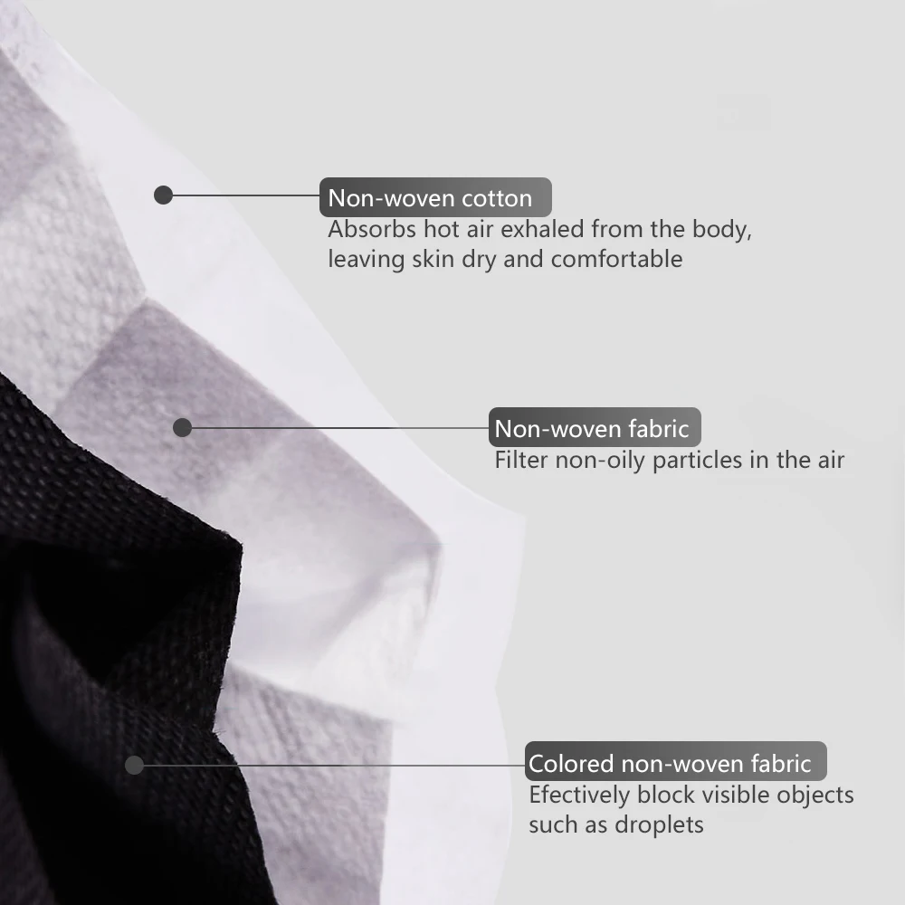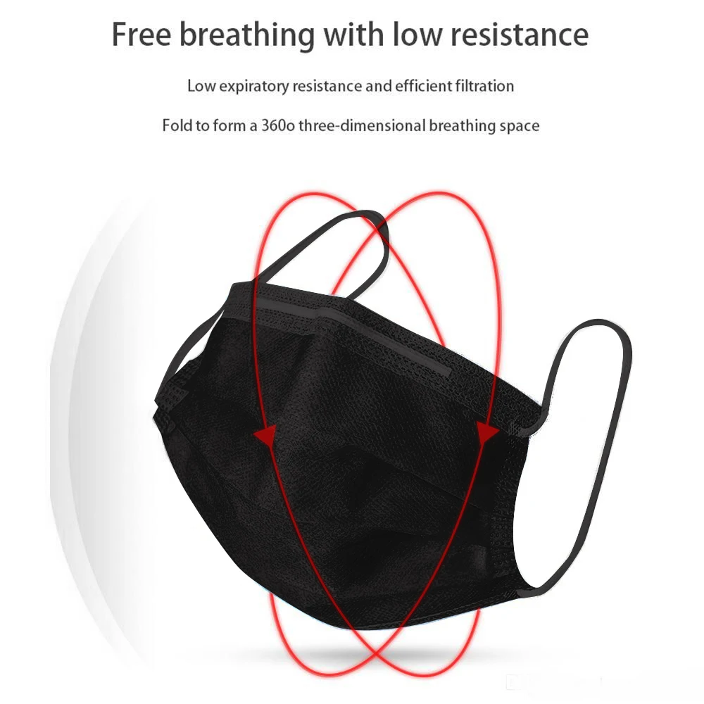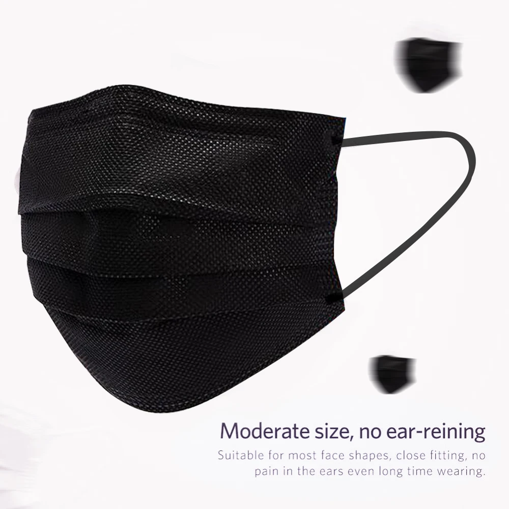 | 10/20/50/100/200Pcs Black Disposable Masks Mouth Cover Mask Cotton 3 Layer Face Anti Dust Mask |