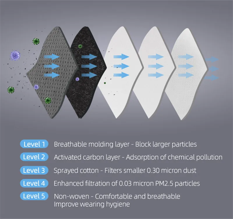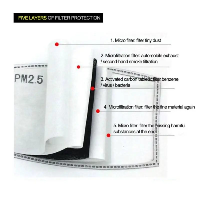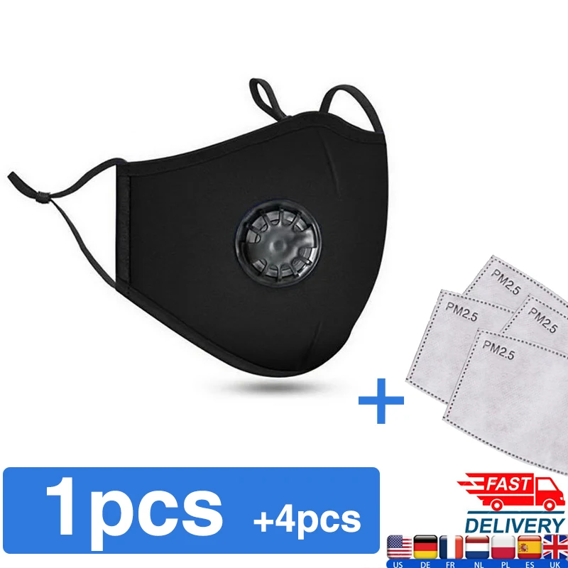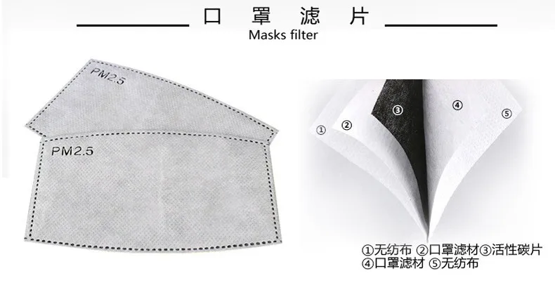 | PM2.5 Filter Mouth Mask Anti-dust Mask Reusable Mask with Breathing Valve 5 Layers Filter Cotton Masks Washable Mouth Face Masks |