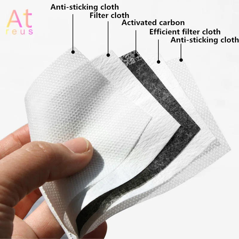 Mask Replaceable filter/Filter Paper/Filter PadsSize:12cm*8cmMaterial:5 layer1.Anti-sticking cloth2.Filter cloth3.Activated carbon4.Efficient filter cloth5.Anti-sticking clothPacking:10,20,30,40,50,100,150pcs filter to choose.(not include mask)PM 2.5, ideal to protect your mouth and face from Dust, Haze, Germs, Allergies,Smoke,Pollution,Ash, Pollen,Gardening,Crafts.Suggest replace the filters every week of uses for the best effect.