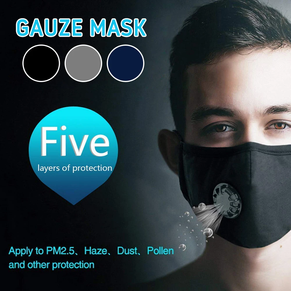 | Respirator Cotton Mask Breathing Filter Valves Protective Masks PM2.5 Dust Mark Black Mask With 10 Filter Reusable washable |