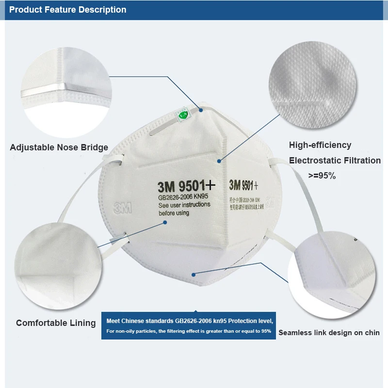 | 3M 9501+ Particulate Respirator Masks Dust Mask Anti-haze 9502+ Protective Anti-particles Filter PM2.5 Mouth Mask 9501 9502 |