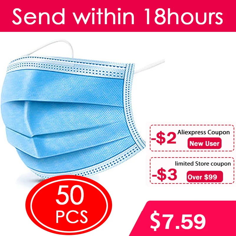 Fast Delivery Disposable Protective Mask 5-500pcs Antibacterial 3 Layers Waterproof Meltblown Cloth Facial Cover Dust Proof MaskBuy Now On Aliexpress
