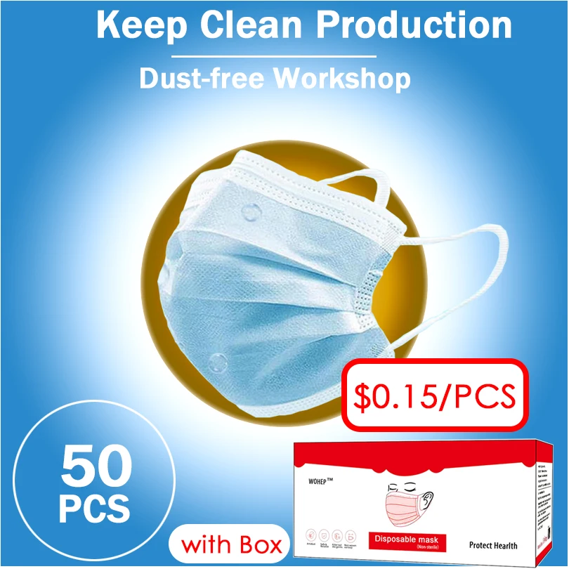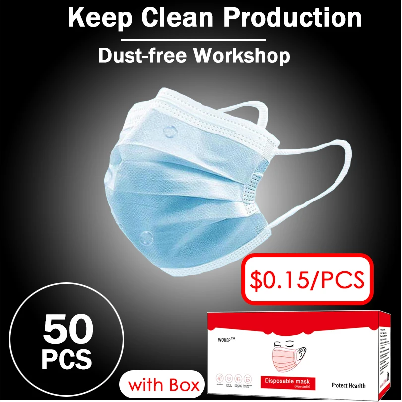 50PCS Stock Women Face Mouth Mask For Men Disposable Protect 3 Layers Filter Dustproof Earloop Non Woven Protective Masks AntiBuy Now On Aliexpress